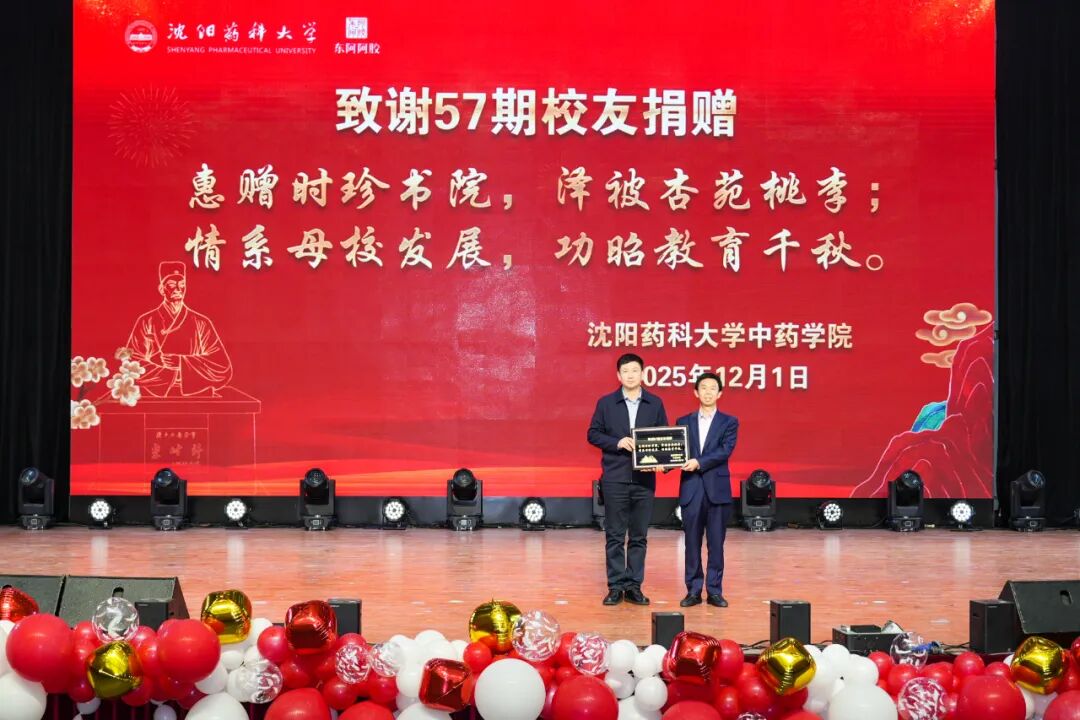 四秩岐黄承薪火,药苑春秋续华章。12月1日,在沈阳药科大学中药学院建院四十周年之际,沈阳药科大学时珍书院在“东阿阿胶传承创新奖学金”的荣耀见证下,在迎接2025级新同学的欢庆氛围中,在南校区大学生活动中心成功启动。57期校友代表、济南大医科技有限公司董事长王德奎,东阿阿胶股份有限公司人力资源部副总经理罗成应邀出席活动。校党委书记高明宇,校党委常委、副校长李可强、路金才出席活动,学生处、招生就业处、校团委负责人,中药学院领导班子成员及学院师生代表700余人参加活动。活动由中药学院院长李宁、学院党委书记杨建军主持。