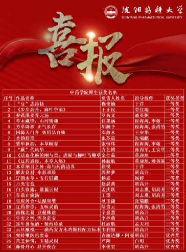 近日,由辽宁省教育厅主办的2025年辽宁省普通高等学校本科大学生动植物标本制作大赛顺利落下帷幕。中药学院师生在本届比赛中斩获佳绩,共计获奖26项,其中一等奖8项、二等奖7项、三等奖8项、优秀奖3项